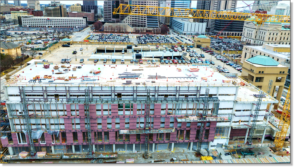 Blake Pond and Nate Linder of Hall Aluminum will explain the benefits and challenges of their innovative approach to preglaze the curtainwall assemblies in their Fort Wayne shop, then ship them to Indy and install them from the interior. This approach requires additional coordination but allows for shop assembly, saving time in the field and resulting in a higher-quality installation. Blake and Nate will also explain how the panels are rigged, lifted, and set from inside the building.